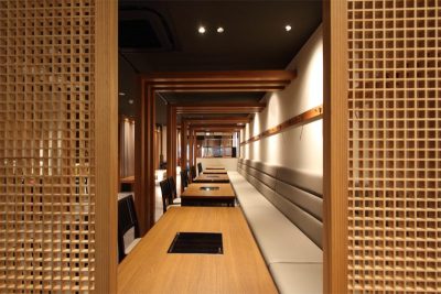 客席に着くとホッと落ち着く照明計画やスケール感、プライバシーを守るためのスダレなど、店に来られるお客様の目線に立った設計をするように心掛けました。