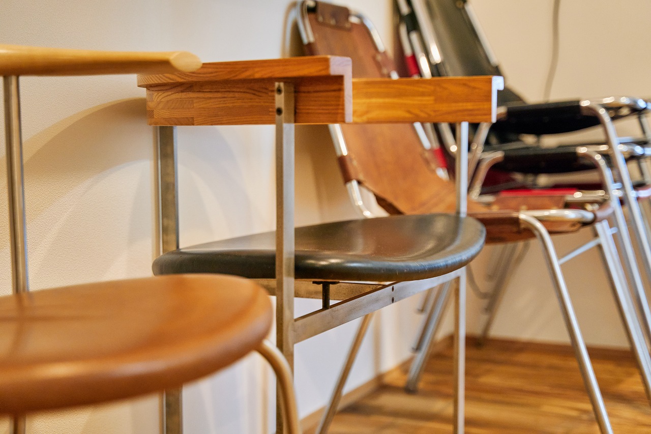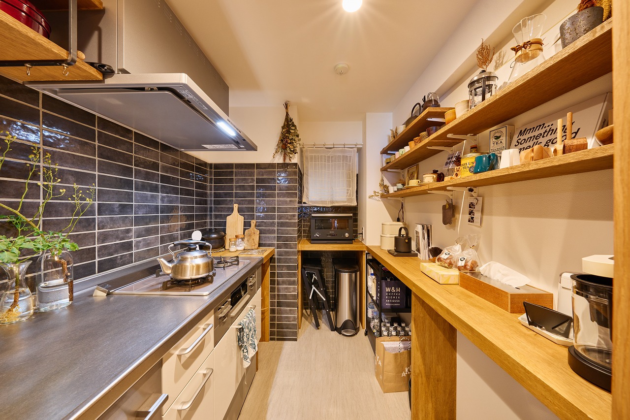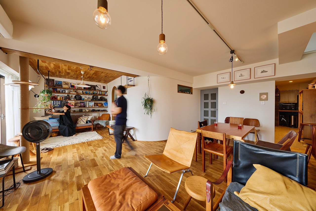 マイホームを検討し始めたのは、旦那さまが転職して転勤の可能性がなくなったことがきっかけ。「ヴィンテージ家具に似合うのは、新築の家じゃないと感じて」と、広いリビングと眺望が決め手となった山手の中古マンションをリノベーションして住まうことに。最寄り駅まで距離があるものの、家ですごす時間の心地よさと、夜景や花火が見える広々ルーフバルコニー、そして「椅子コレクションを飾る」という夢が叶うことを優先して決定。バス移動も、家のすぐ近くにバス停があり、住みはじめると気にならなくなったそう。