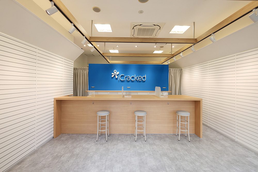 「iCracked Store みのおキューズモール」の店舗デザインを担当しました。