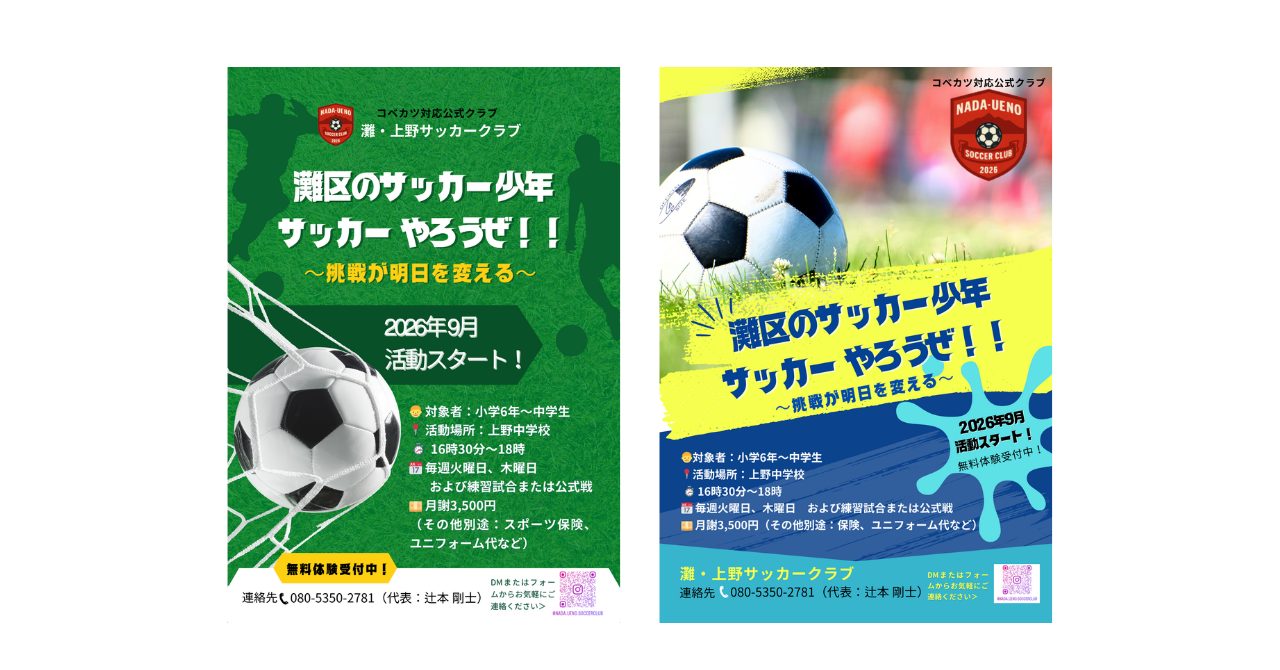 灘・上野サッカークラブの新規立ち上げに伴う募集チラシを制作。