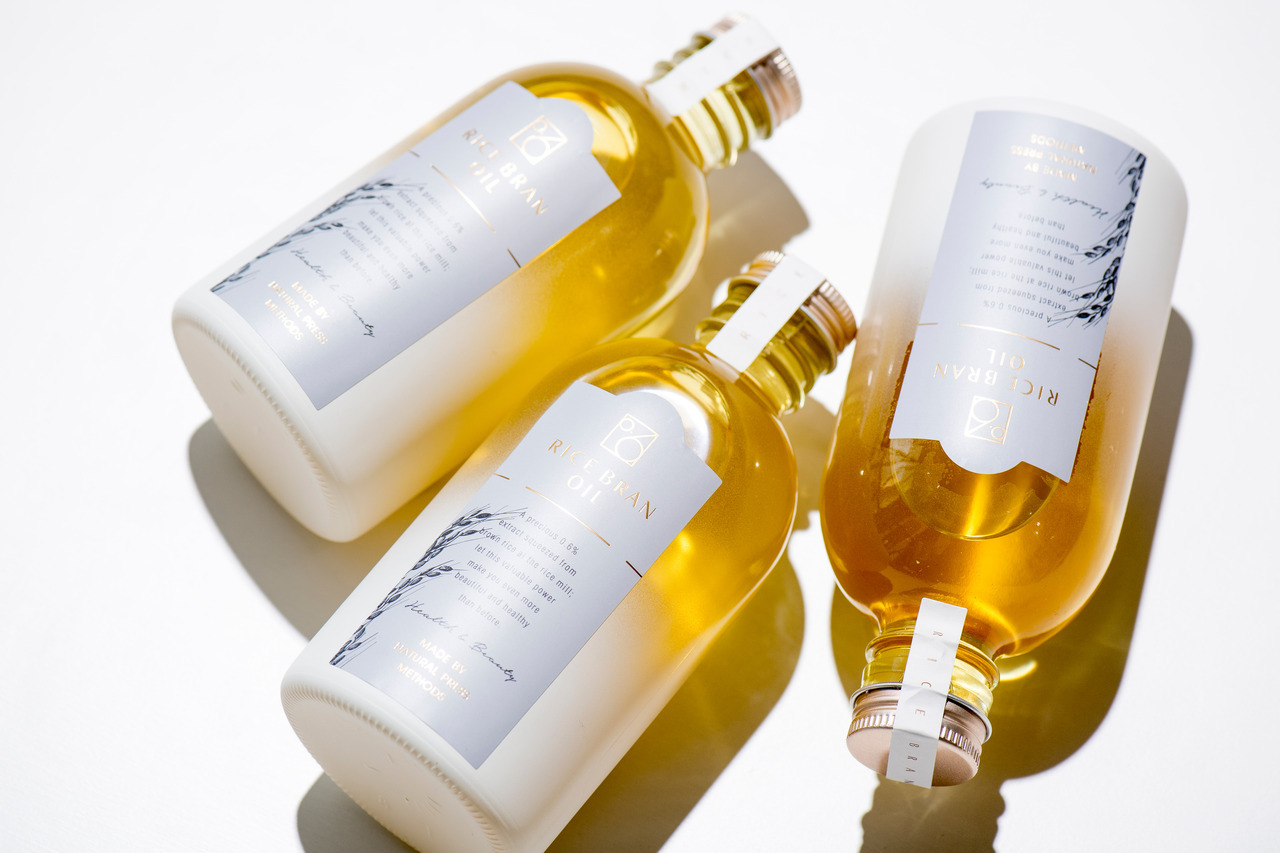 老舗米卸の神明の0.6ライスブランオイルのロゴデザインからパッケージデザイン、フォトディレクション等々、色々と担当した。米糠から約0.6%しかとれない圧搾米油という高価格帯の商品だけれど大量ロットではないという制約の中で、いかに商品に見合うパッケージを施せるかがデザインの肝となってくる。瓶自体にホワイトのグラデーションを入れて、単調な印象の米油瓶という印象を払拭させて、油のゴールド感を強調させた。ロゴは当初はリテールよりのいかにもなロゴを提案していたが、土地柄やリテール販売でないこと、ターゲット層を考えてアパレルやアクセサリーブランドに近い女性向けのシンプルなシンボルマークとした。0.6を四角で覆うことで「6」が雫の形に見えるシンプルな仕掛けである。