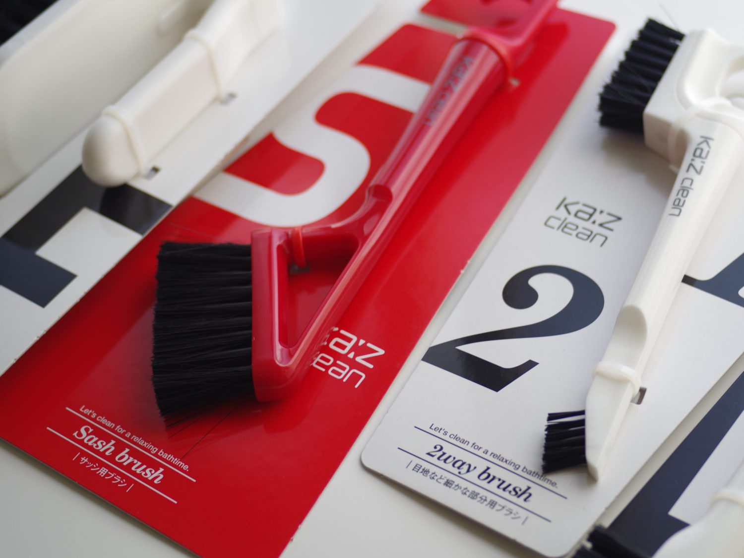 家庭用の掃除用ブラシ。バスタブ用、窓サッシ用、排水ドレーン用など用途に合わせた形状を提案。既存の製品とは一線を画したシャープな形状と色展開で「男性にも家事を」を標榜。2014年発売。